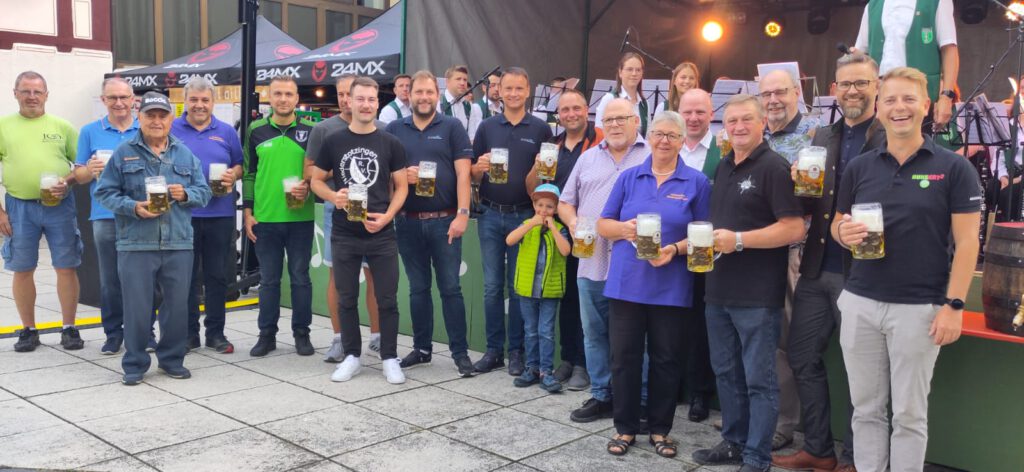 Was für ein Fest! Am vergangenen Wochenende feierten wir das 40-jährige Jubiläum des Lindenfests vor dem Rathaus. Bürgermeister Matthias Bremer eröffnete die Feierlichkeiten traditionell mit zwei Schlägen am Fassanstich. Zuvor erinnerte er an die Gründer, die vor vier Jahrzehnten die Idee zu diesem besonderen Fest ins Leben gerufen hatten, und bat alle beteiligten Vereinsvertreter vor die Bühne.